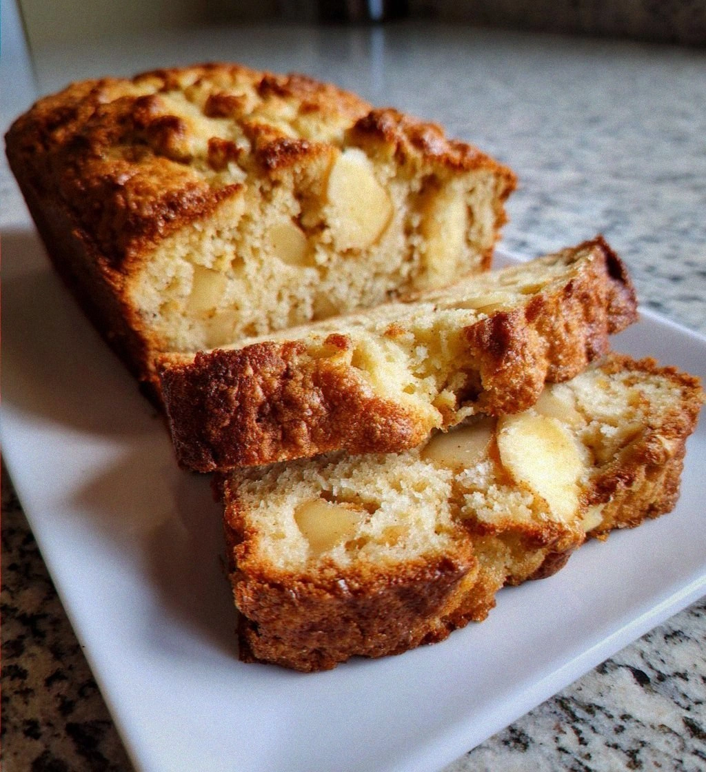 Slice the loaf with a serrated knife, cutting about one‑inch thick slices. The first slice will reveal a tender, moist crumb studded with soft apple pieces that gleam with a caramel sheen. Serve warm, perhaps with a pat of butter melting into the center, and watch as your family’s eyes light up with each bite.